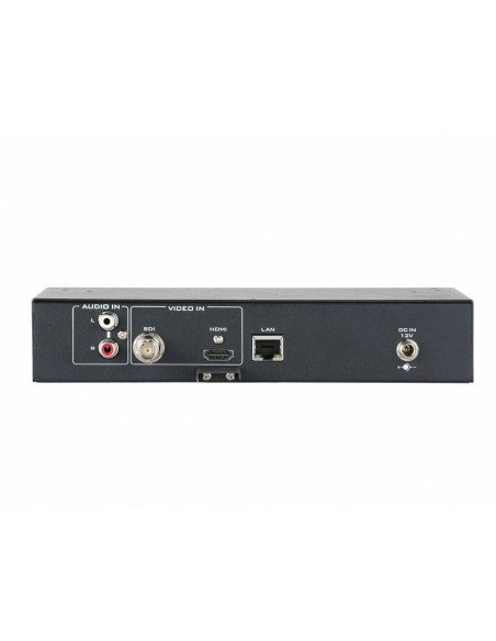 El NVS-33 puede configurar dos tasas de bits diferentes para grabar y transmitir simultáneamente. Admite entradas SDI y HDMI, así como entradas no balanceadas RCA de audio externo. El NVS-33 se controla de forma remota utilizando una PC con Windows / Apple o un dispositivo móvil con un navegador web.
